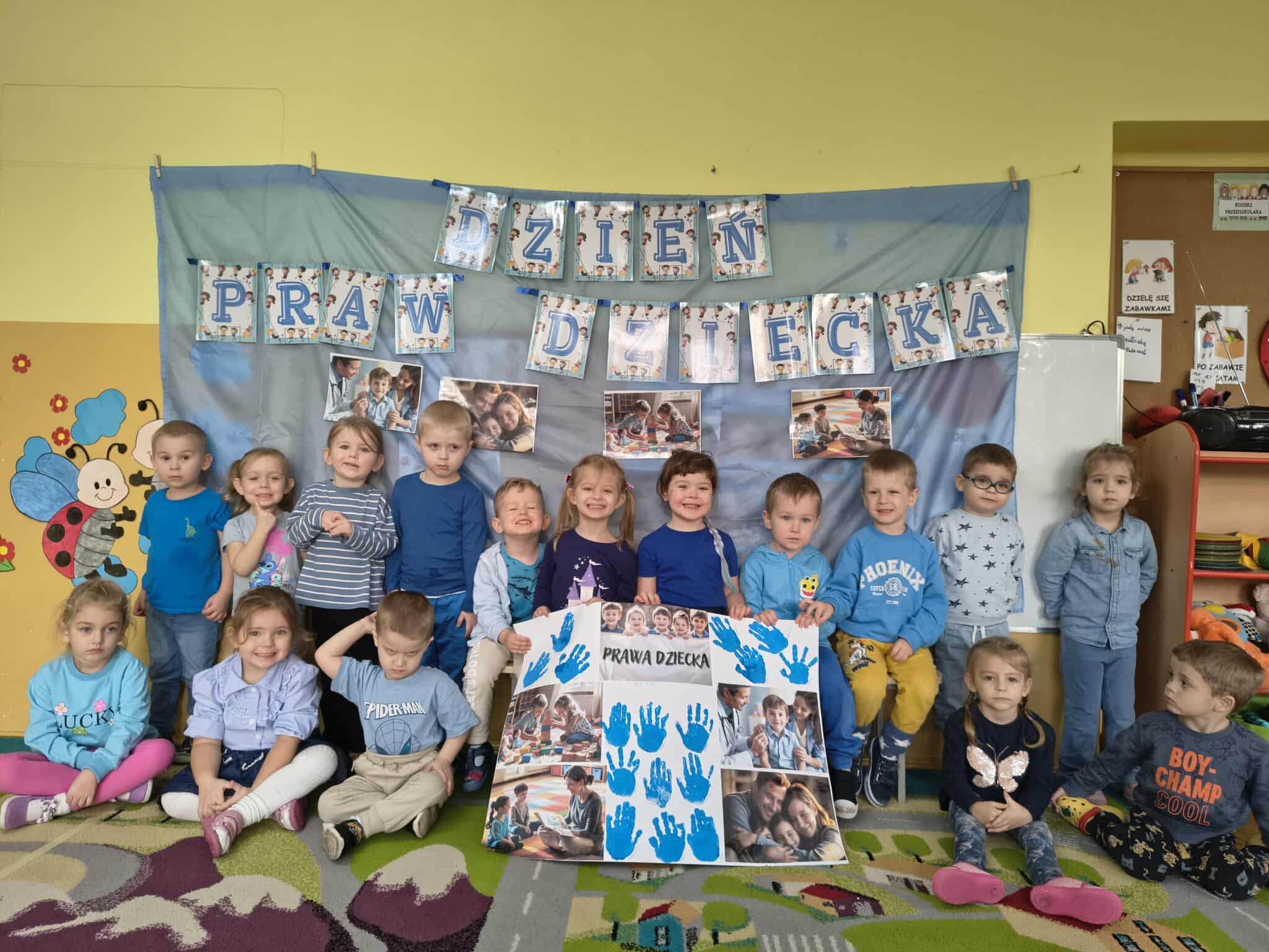 Dziś w naszym przedszkolu świętowaliśmy Dzień Praw Dziecka. To ważne święto przypominające, że każde dziecko ma swoje prawa do miłości, bezpieczeństwa, nauki i zabawy. Z tej okazji wszyscy ubraliśmy się dzisiaj na niebiesko, aby podkreślić solidarność z dziećmi na całym świecie. Niebieski kolor wypełnił całe nasze przedszkole i stworzył wyjątkową, radosną atmosferę.