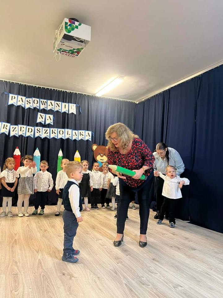 Dla naszych nowo przyjętych przedszkolaków z grupy ,,Biedronki "najważniejszym wydarzeniem w tym dniu było Pasowanie na Przedszkolaka. Dzieci zaprezentowały swoje umiejętności recytatorskie, wokalne i taneczne. Zabawa przebiegła w wesołej, przyjaznej atmosferze. Przedszkolaki złożyły uroczystą przysięgę, a pani dyrektor Joanna Stańczyk pasowała wielką kredką wszystkie nowoprzyjęte dzieci na Przedszkolaka.